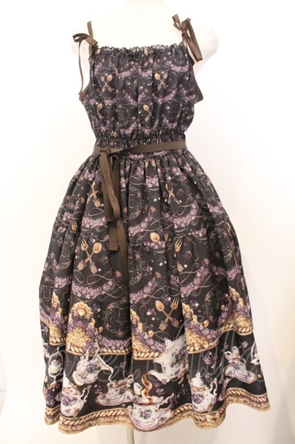 Enchantlic Enchantilly / すみれのお茶会ティアードジャンパースカート クロ O-26-02-18-038-LO-OP-OW-OS