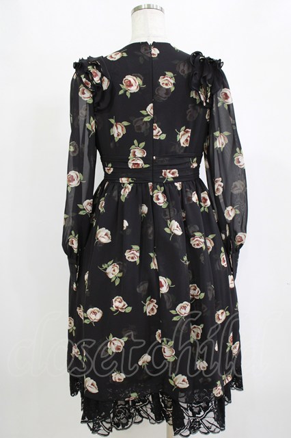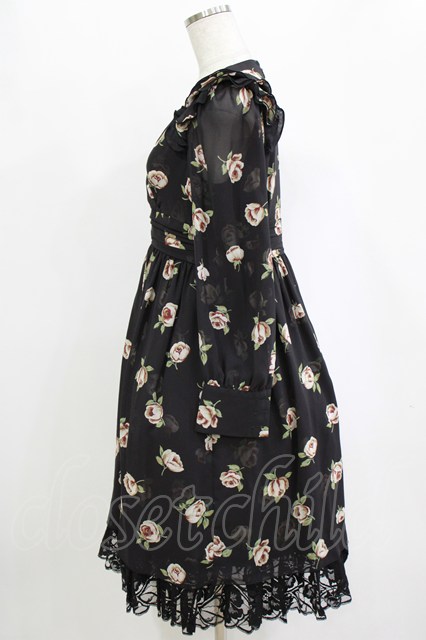 JESUS DIAMANTE / スカーフワンピース 42 バルドー薔薇/ブラック H-26-02-20-029-JE-OP-NS-ZH