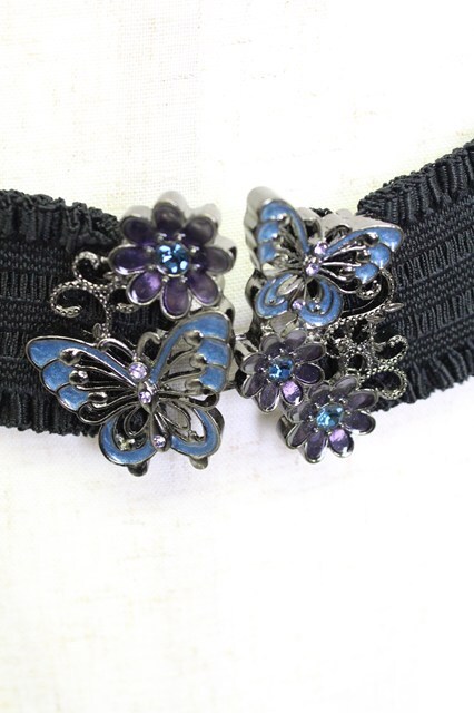 axes femme / G 蝶ゴムベルト 青X黒 T-26-02-24-066-AX-ZA-SA-ZT