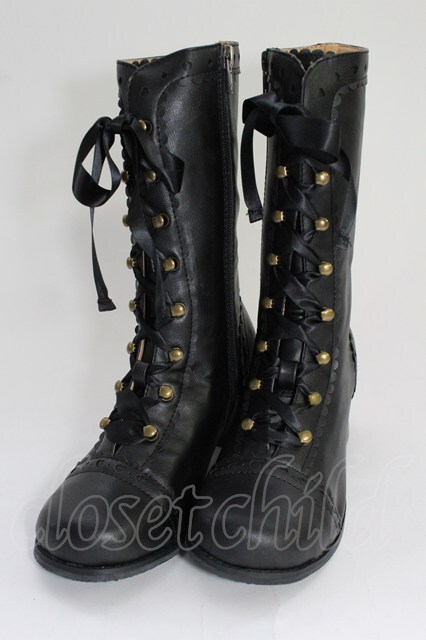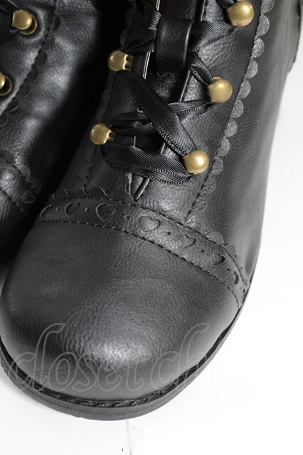 Innocent World / ハートとダイヤのリボンショートブーツ S 黒 T-26-02-24-070-IW-SH-SA-ZT