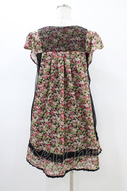 axes femme / 花柄シフォンワンピース M ブラック H-26-02-19-1050-AX-OP-NS-ZH