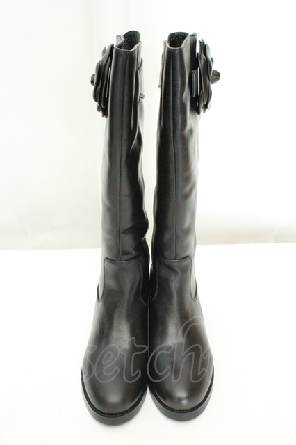 INGEBORG / カメリアコサージュベルテッドブーツ 22.5cm クロ O-26-02-19-052-LO-SH-IG-OS