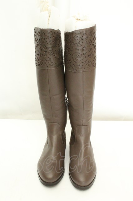 INGEBORG / カメリアくり抜きロングブーツ 22.5cm ブラウン O-26-02-19-051-LO-ZA-IG-OS