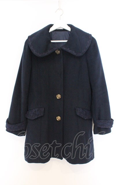 axes femme / 薔薇ボタン丸襟コート M ネイビー O-26-02-18-1078-AX-CO-OW-OS