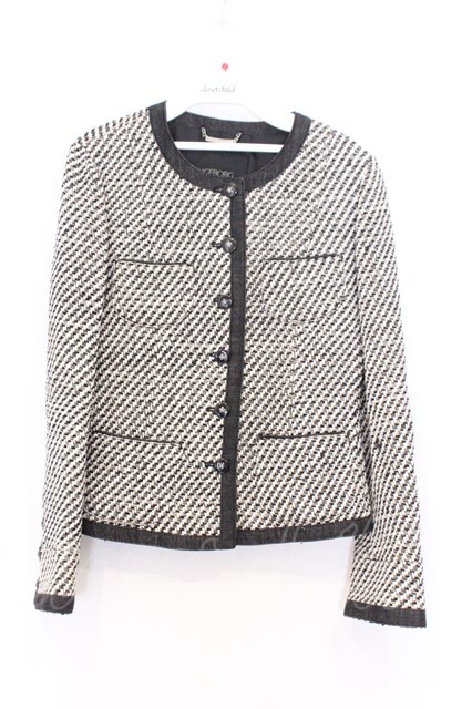 INGEBORG / デニムラインノーカラージャケット シロ×クロ O-26-02-18-1057-LO-JA-IG-OS [2100080000073174-O-26-02-18-1057-LO-JA-IG-OS]