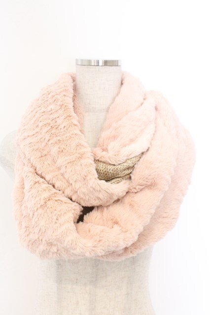 axes femme / ボアニットスヌード 180×29cm ピンク×ベージュ O-26-02-18-1003-AX-ZA-IG-OS