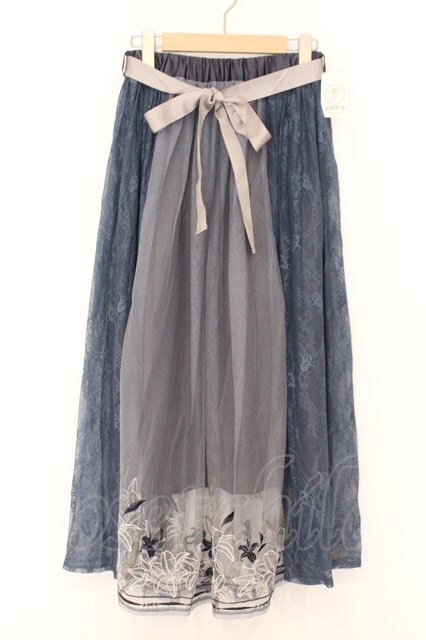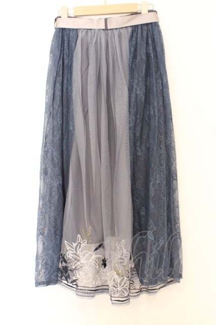 axes femme / リリー柄チュール刺繍スカート ブルー O-26-02-18-1016-AX-SK-IG-OS [2100080000074903-O-26-02-18-1016-AX-SK-IG-OS]