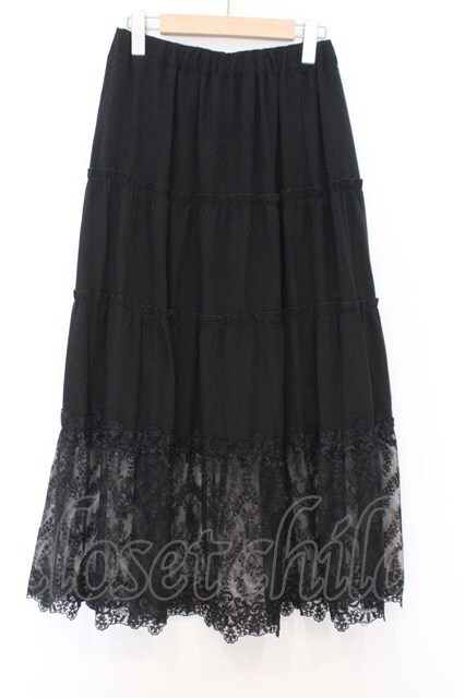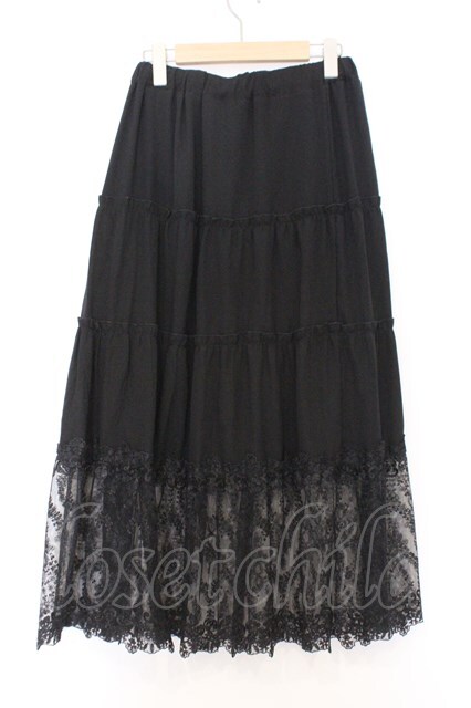 axes femme / 裾レースティアードスカート クロ O-26-02-18-1025-AX-SK-IG-OS