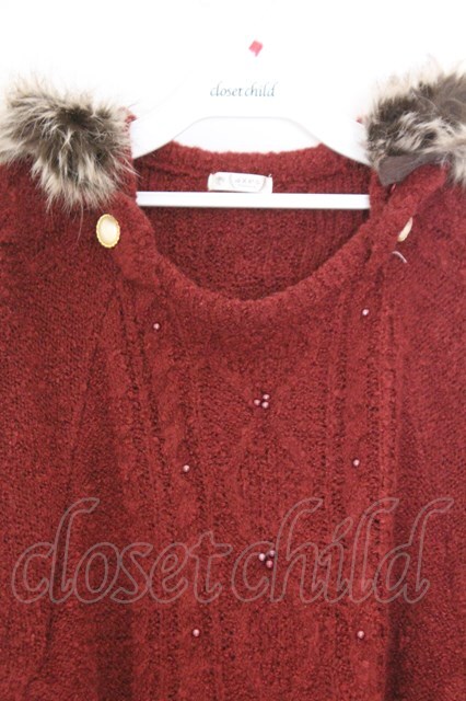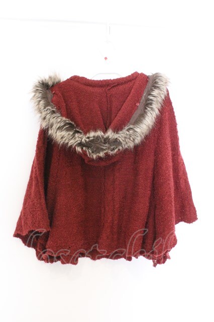 axes femme / フード付きニットポンチョ M アカ O-26-02-18-1076-AX-TO-OW-OS