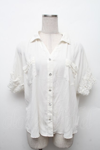 axes femme / バックレースアップシフォンブラウス 白 S-26-02-18-037-AX-BL-HR-ZS