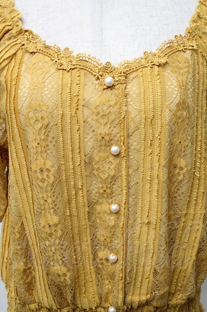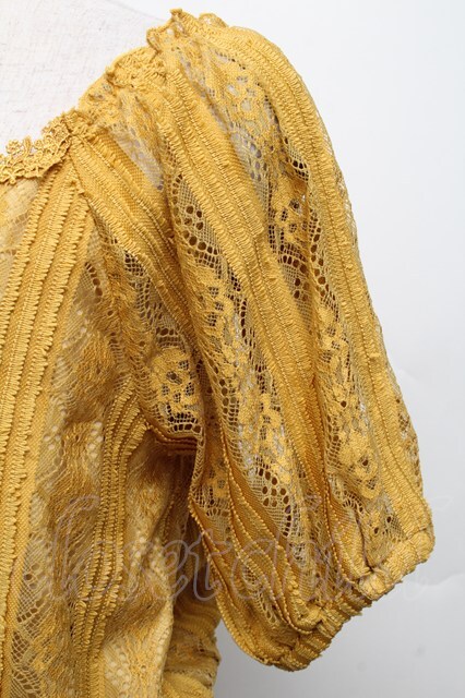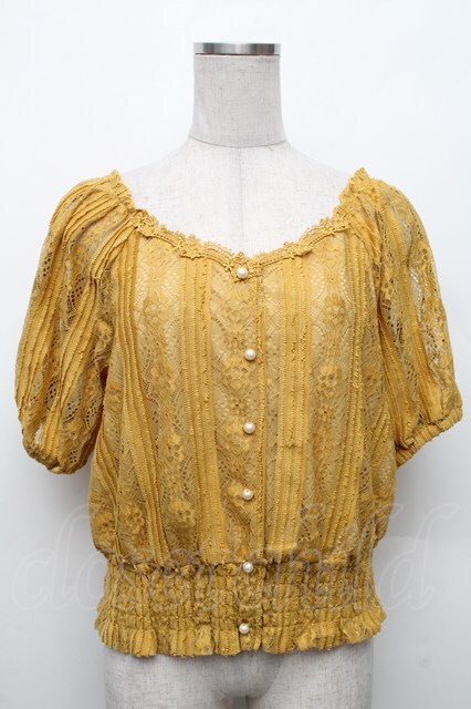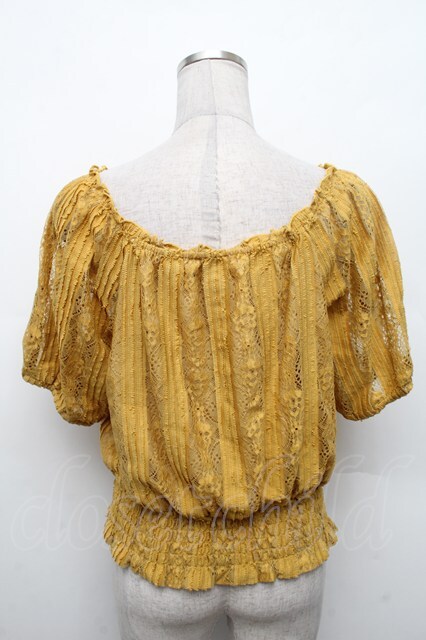 axes femme / 総レース裾シャーリングトップス からし S-26-02-18-044-AX-TO-HR-ZS