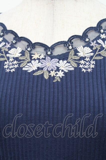 axes femme / 花刺繍スカラップレースプルオーバー 紺 S-26-02-18-045-AX-TO-HR-ZS