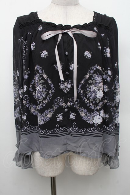 axes femme / ブーケパネル柄プルオーバー 黒 S-26-02-18-047-AX-TO-HR-ZS