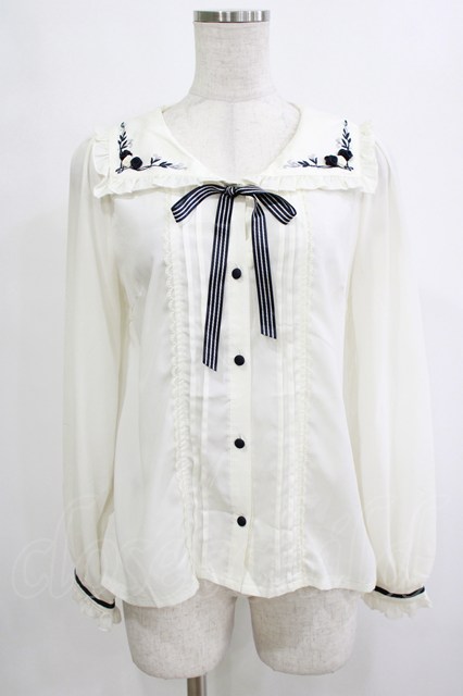 axes femme POETIQUE / 刺繍セーラー襟ブラウス M オフ H-26-02-21-049-AX-BL-NS-ZH