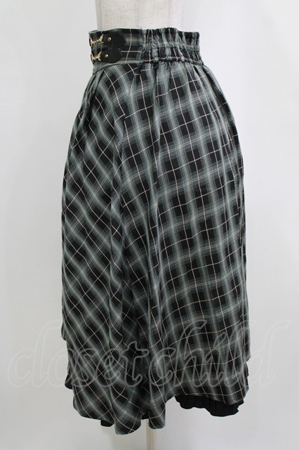 axes femme / 裾プリーツチェック柄スカート M グリーン H-26-02-21-035-AX-SK-NS-ZH [2100030000087558-H-26-02-21-035-AX-SK-NS-ZH]