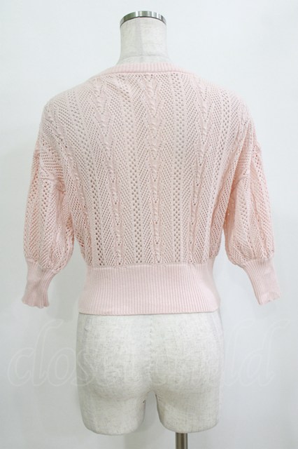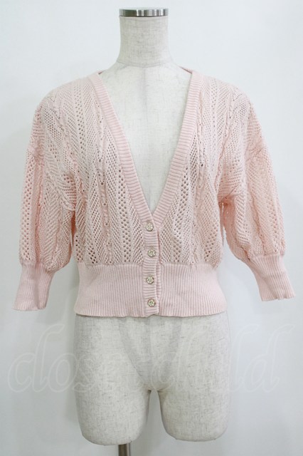 axes femme / 透かし編みニットカーデ M ピンク H-26-02-21-063-AX-TO-NS-ZH