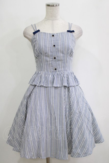 Secret Honey / ストライプジャンパースカート Free オフ/ネイビー H-26-02-21-030-CA-OP-NS-ZH
