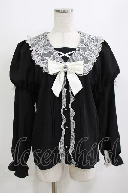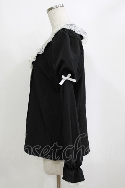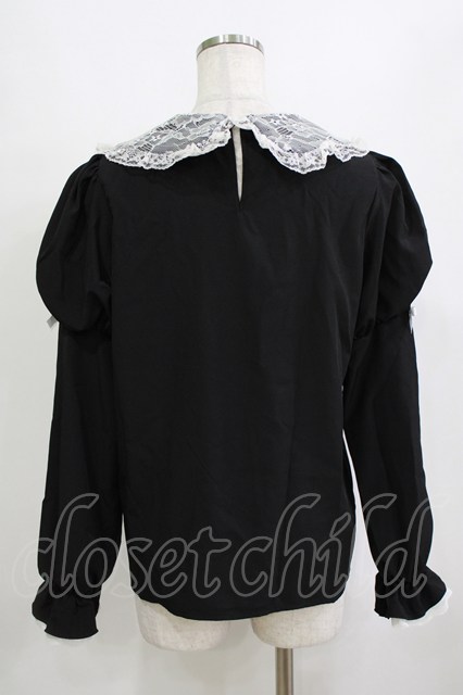 NOEMIE / レース配色姫スリーブブラウス M ブラック/オフ H-26-02-21-058-LO-BL-NS-ZH