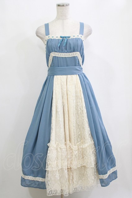 axes femme kawaii / ヴィンテージシフォンジャンパースカート M サックス H-26-02-21-006-AX-OP-NS-ZH