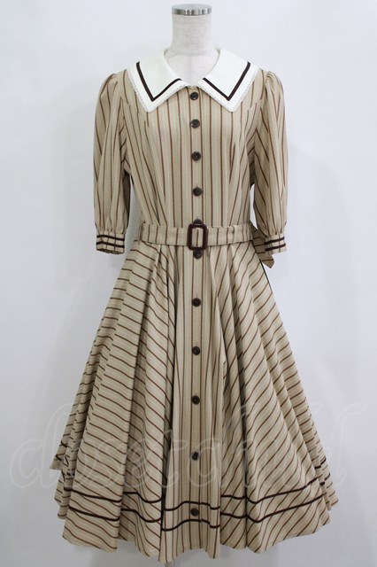 Innocent World / 英国調ストライプワンピース L カフェオレ×ショコラ/Cafe au lait×Chocolat H-26-02-21-013-IW-OP-NS-ZH [2100030000087377-H-26-02-21-013-IW-OP-NS-ZH]