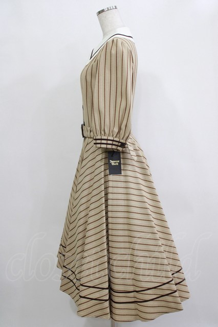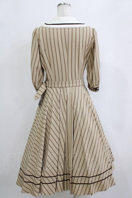Innocent World / 英国調ストライプワンピース L カフェオレ×ショコラ/Cafe au lait×Chocolat H-26-02-21-013-IW-OP-NS-ZH