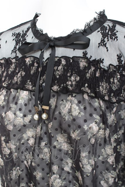 axes femme / 肩レースバラシフォンブラウス 黒 Y-26-02-19-024-AX-BL-SZ-ZY