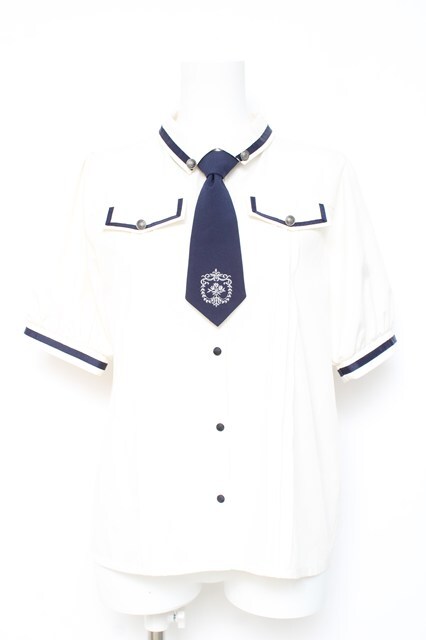 axes femme / ミリタリー風タイ付ブラウス M 紺 Y-26-02-19-030-AX-BL-SZ-ZY [2100070000057203-Y-26-02-19-030-AX-BL-SZ-ZY]