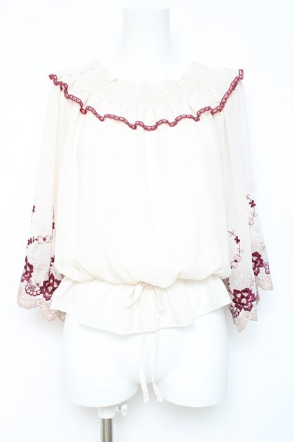 axes femme / 刺繍入りオフショルブラウス M 生成り Y-26-02-19-043-AX-TO-SZ-ZY