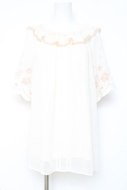 axes femme / 刺繍袖楊柳シフォンチュニック M 生成り Y-26-02-19-044-AX-OP-SZ-ZY