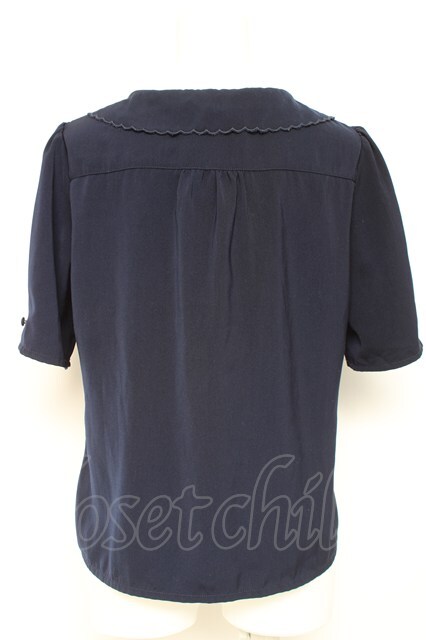 an another angelus / ローズ刺繍開衿ブラウス F 紺 Y-26-02-19-074-CA-BL-SZ-ZY