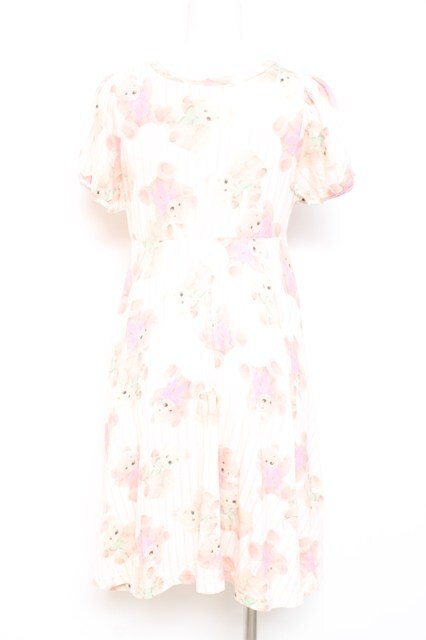 Candy Stripper / テディベアプリントカットワンピース 2 オフ×ピンク Y-26-02-19-089-PU-OP-SZ-ZY
