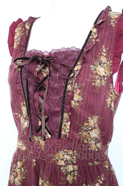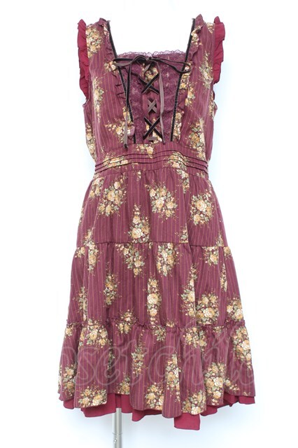axes femme / ピンスト×花柄ワンピース M ワイン Y-26-02-19-119-AX-OP-SZ-ZY [2100070000062549-Y-26-02-19-119-AX-OP-SZ-ZY]