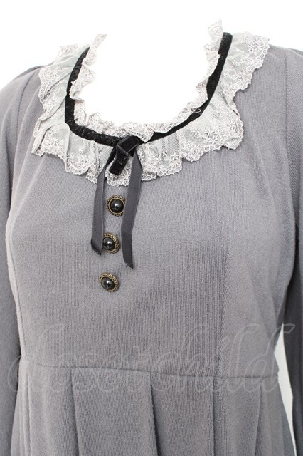 axes femme / ベロアリボンニットワンピース M グレー Y-26-02-19-141-AX-OP-SZ-ZY