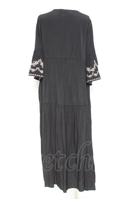 axes femme / 刺繍デザインティアードワンピース 黒 Y-26-02-19-143-AX-OP-SZ-ZY
