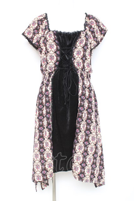 axes femme / フロントベロア花柄ワンピース M 黒 Y-26-02-19-145-AX-OP-SZ-ZY [2100070000056991-Y-26-02-19-145-AX-OP-SZ-ZY]