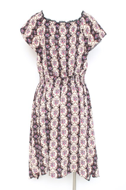 axes femme / フロントベロア花柄ワンピース M 黒 Y-26-02-19-145-AX-OP-SZ-ZY