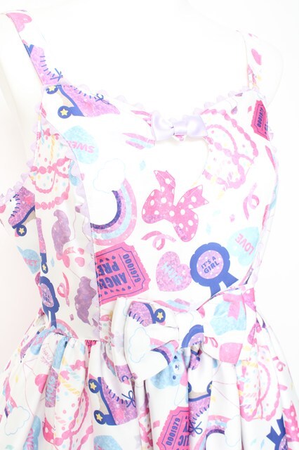 Angelic Pretty / Girly Stickerジャンパースカート 白 Y-26-02-19-178-AP-OP-SZ-ZY