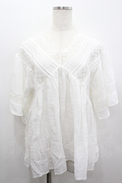 axes femme / レースXタックデザインチュニ M 白 I-26-02-18-004-AX-TO-SA-ZI