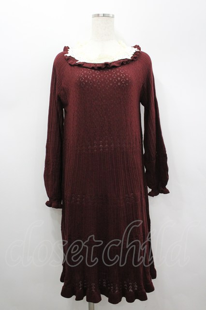axes femme / ローズレースニットワンピース M ワイン I-26-02-18-053-AX-OP-SA-ZI