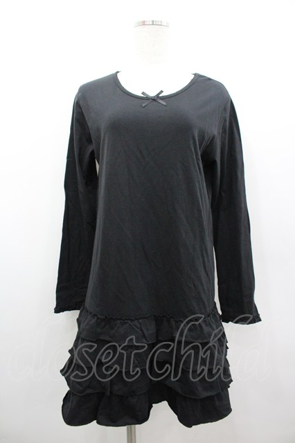 PINK HOUSE / 裾4段フリル長袖ワンピース 黒 I-26-02-18-019-LO-JA-SA-ZI