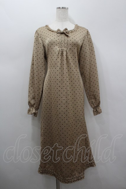 PINK HOUSE / ドットリボンサテン長袖ワンピース ブラウンX黒 I-26-02-18-057-LO-OP-SA-ZI [2100060000049223-I-26-02-18-057-LO-OP-SA-ZI]