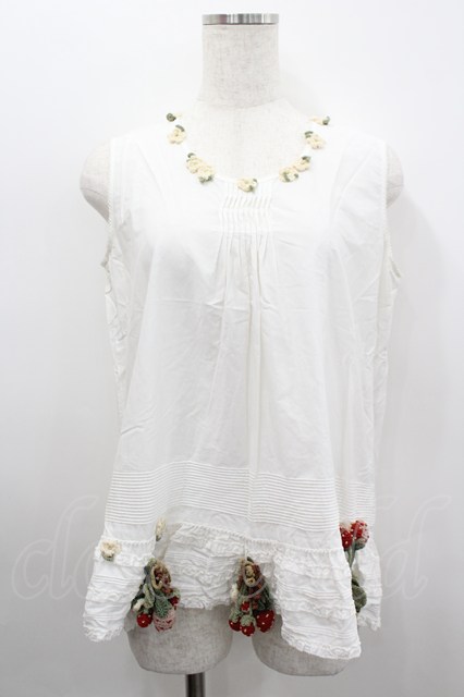 WONDERFUL WORLD / 苺編みぐるみ付きノースリーブブラウス ホワイト I-26-02-18-008-LO-TO-SA-ZI [2100060000037167-I-26-02-18-008-LO-TO-SA-ZI]