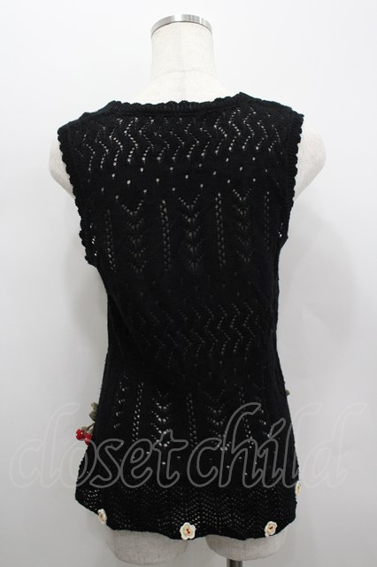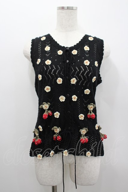 PINK HOUSE / 苺ニットモチーフ付き前開きニットベスト ブラック I-26-02-18-013-LO-TO-SA-ZI [2100060000037155-I-26-02-18-013-LO-TO-SA-ZI]