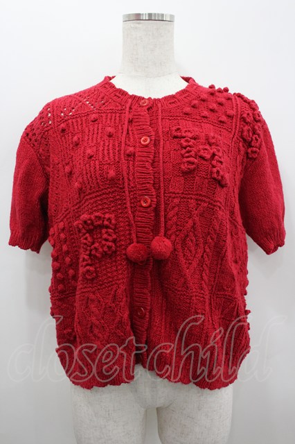 PINK HOUSE / フラワーモチーフパッチワーク半袖ニットカーディガン レッド I-26-02-18-012-LO-TO-SA-ZI [2100060000037153-I-26-02-18-012-LO-TO-SA-ZI]