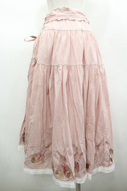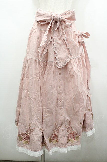 WONDERFUL WORLD / サッシュリボン付きうさぎ刺繍ギンガムチェックスカート ピンク I-26-02-18-080-LO-SK-SA-ZI [2100060000037164-I-26-02-18-080-LO-SK-SA-ZI]
