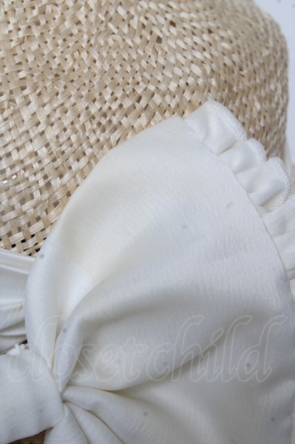 Hoshibako Works / リボン麦わらボーダーハット 白 Y-26-02-21-003-LO-AC-SZ-ZY