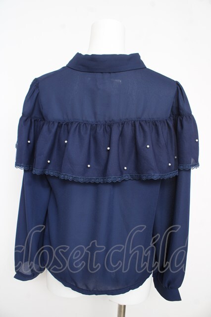 axes femme / パール×チュールフリルブラウス ネイビー Y-26-02-21-035-AX-BL-SZ-ZY [2100070000053591-Y-26-02-21-035-AX-BL-SZ-ZY]