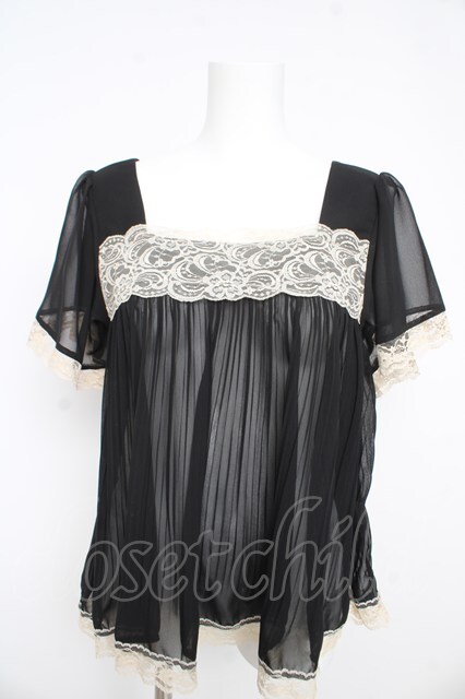 LODISPOTTO / プリーツシフォンブラウス 黒 Y-26-02-21-056-LO-BL-SZ-ZY