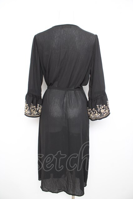 axes femme / 刺繍入りロングガウンカーディガン M 黒 Y-26-02-21-151-AX-OP-SZ-ZY