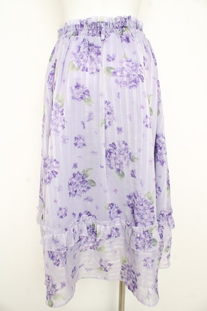 axes femme / 紫陽花柄シアーストライプスカート ラベンダー Y-26-02-21-158-AX-SK-SZ-ZY